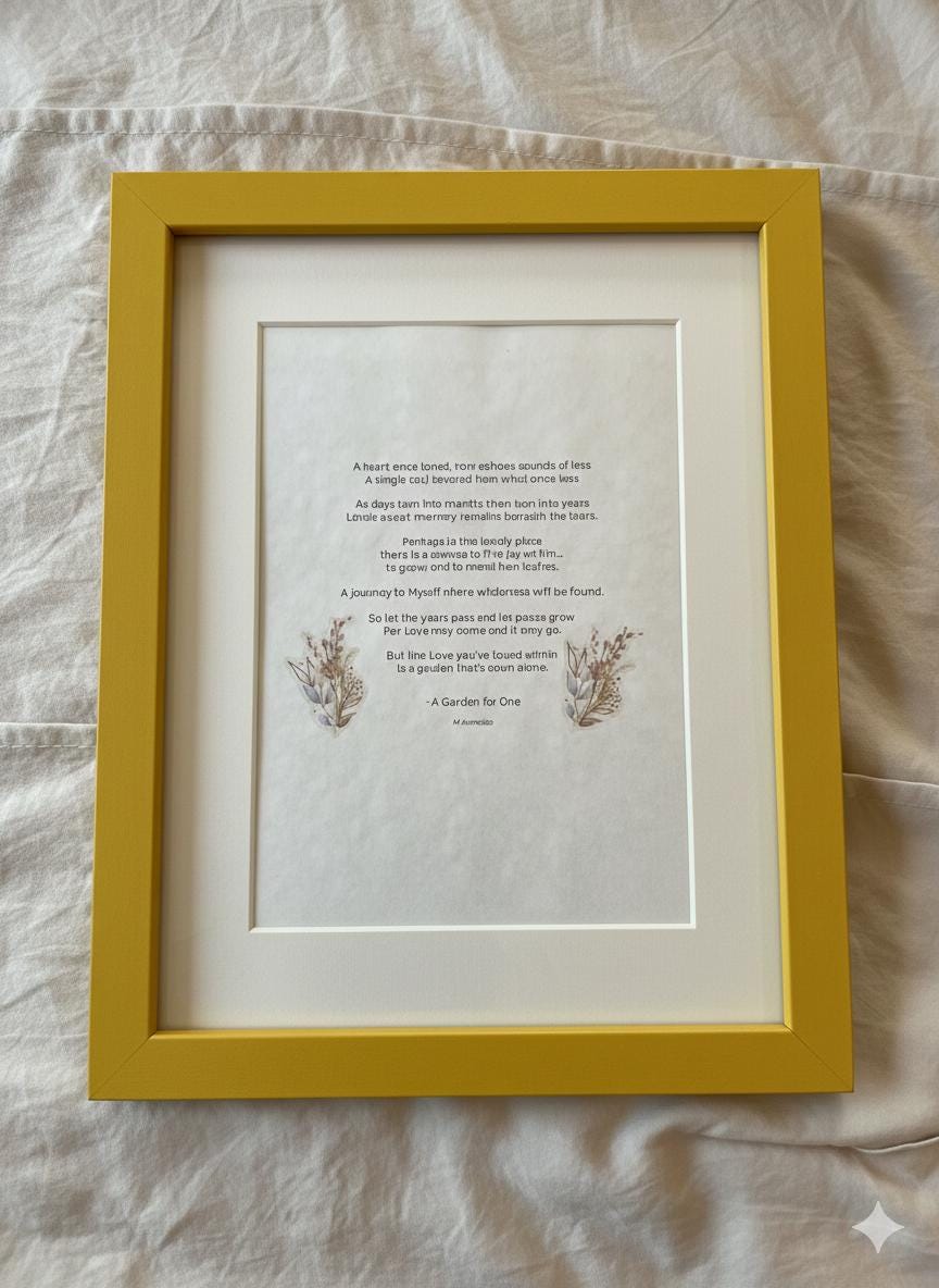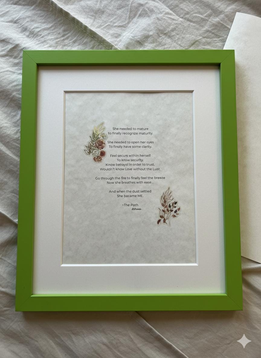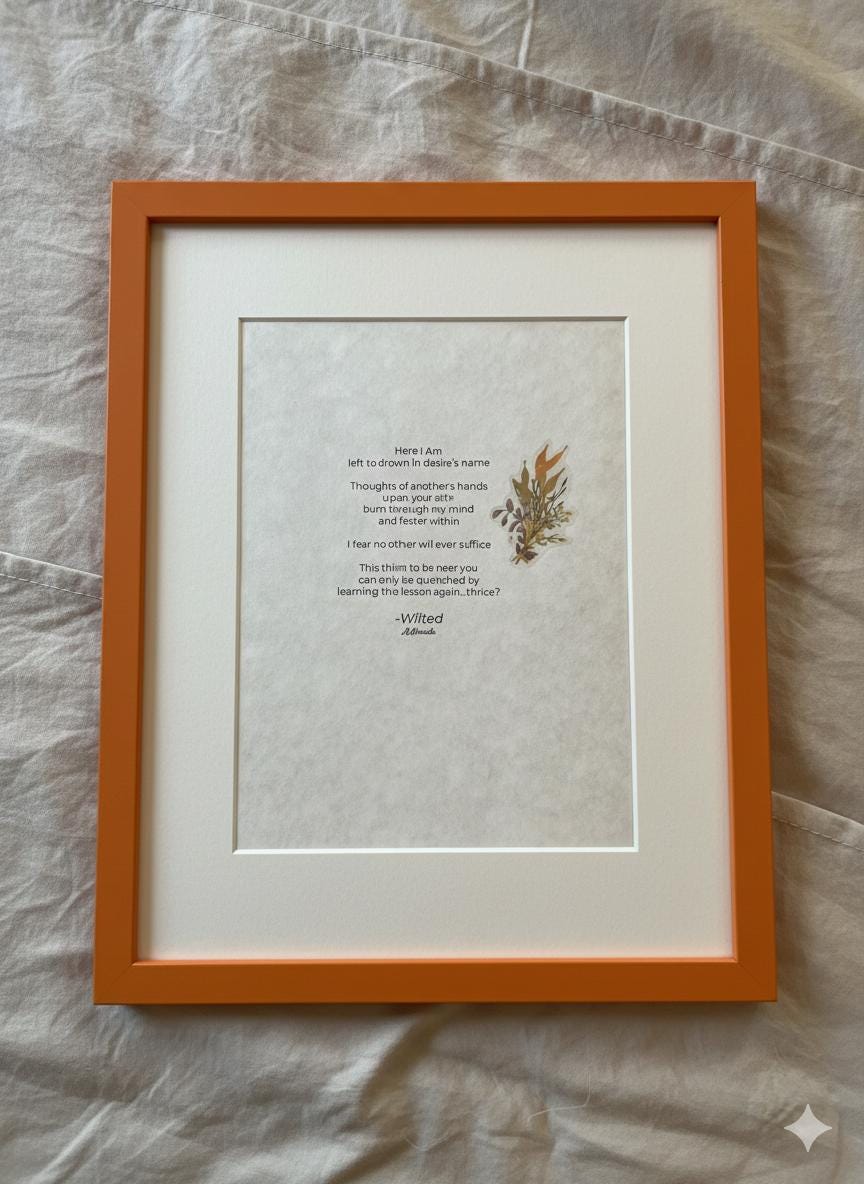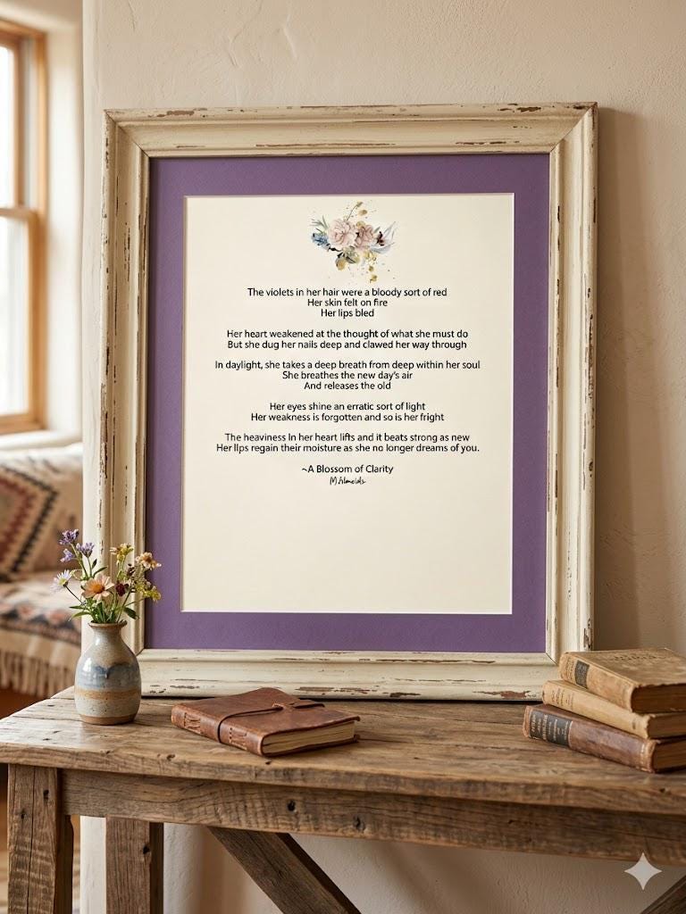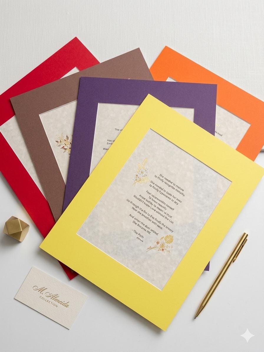 To support my workflow as a small shop, poem selection is available, but mat colors are varied and chosen at random for each order. *FRAME NOT INCLUDED *MAT COLOR VARIES